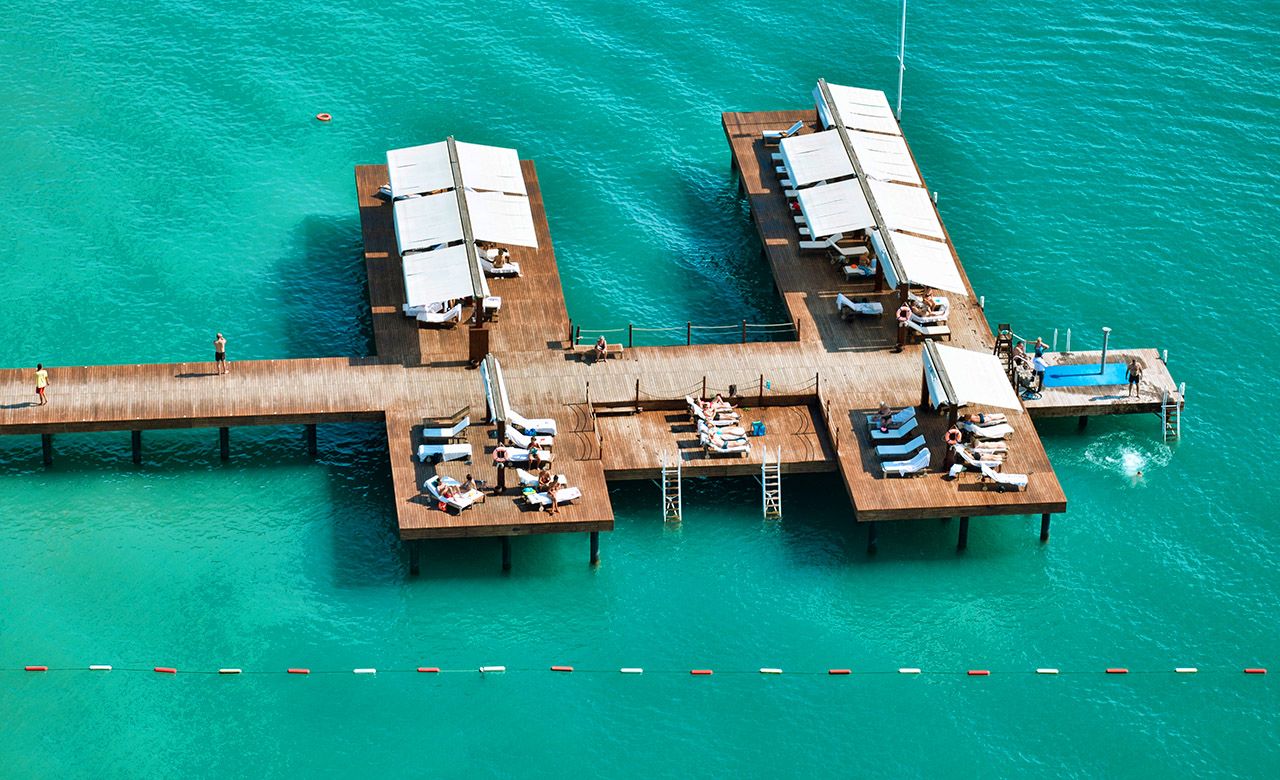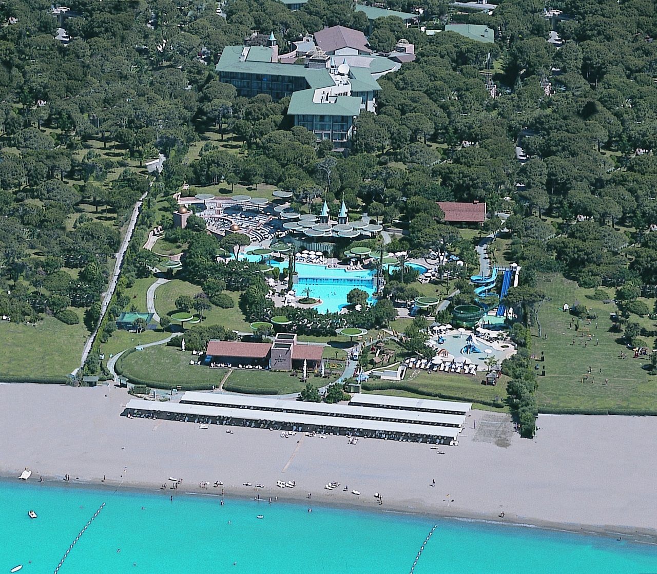 There are 2 Outdoor, 1 Indoor swimming pools and 3 children’s pools. The facilities and activities include: fitness center, table tennis, beach volleyball, water polo, aerobics, water gymnastics, archery, air rifle shooting and mini football. The Asklepion Thalasso therapy Center offers a number of health and care services including Turkish bath, Therapy swimming pool and beauty center.