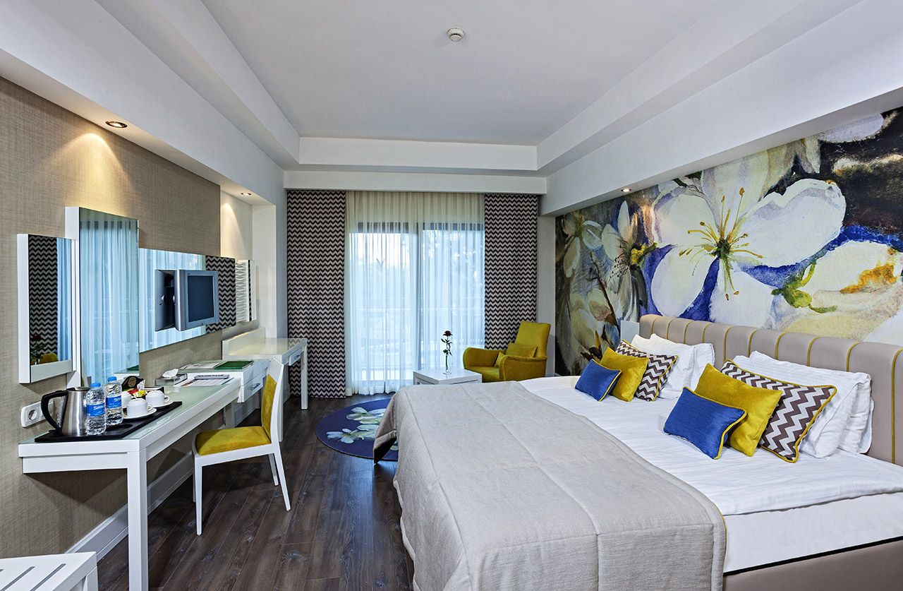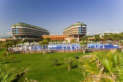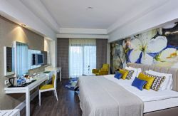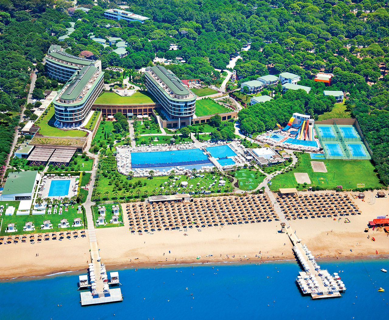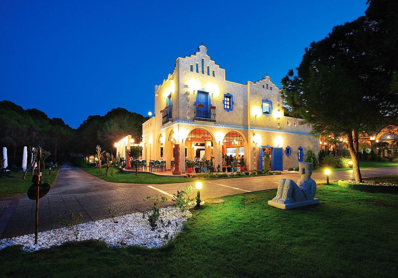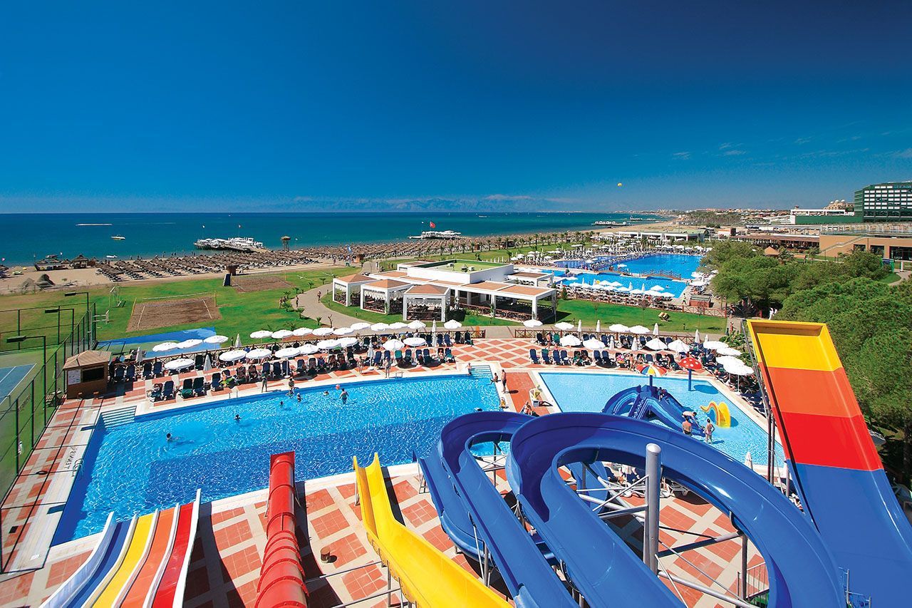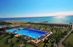 There are 4 tennis courts and 3 swimming pools and an Aqua park with 5 slides. The facilities and activities include; Beach Volleyball, Minigolf, Dart Boccia, Badminton, Streetball, aerobic, water sport, Table Tennis, fitness center and Daily Entertainment. The Spa center offers a number of health and care services including Turkish bath, sauna, steam bath and beauty center.