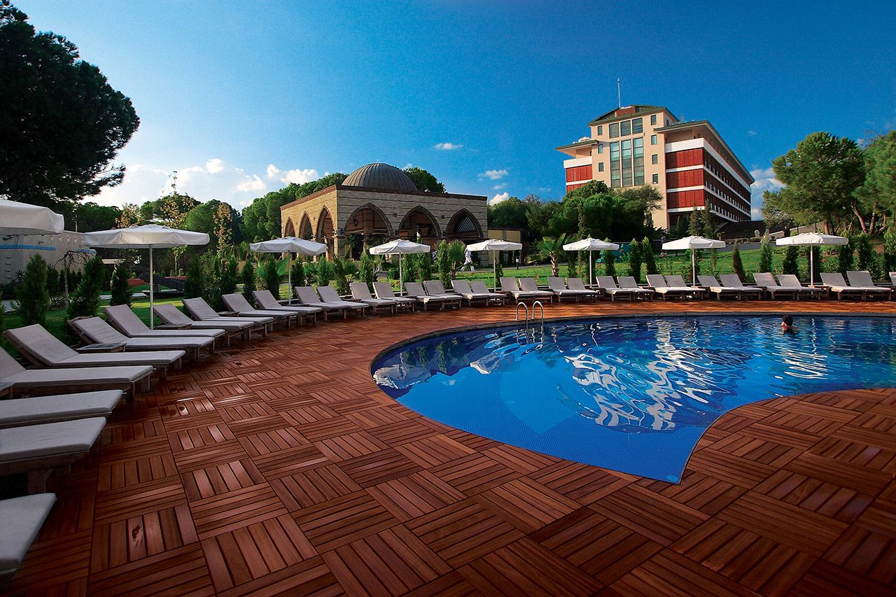 One of the “value for the money” champions of Belek region. Facility is a perfect combination of the 1. class holiday village and the 5 stars all inclusive resort hotel. It is beach front and neighbour of Montgomerie Golf Course. It takes less than 15 minutes to reach the golf club from the lobby. Voyage Belek Golf & SPA provides fee of charge shuttle service, as Montgomerie Course associated with the hotel. There are several diff erent type of standard rooms as they are in Main Building, A Block and Bungalow Garden section. All big and comfortable enough for double accommodation.